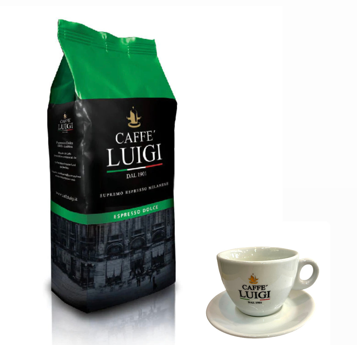 Espresso DOLCE Bohnen Beans 1Kg Caffe 'Luigi 100% Arabica + 1 Cappuccino Tasse Klein